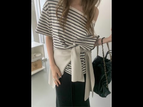 G06 Miu系斜肩撞色條紋T 白色現貨